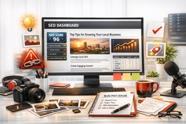 Each week’s content is chosen based on keyword opportunity, ranking gaps, competitor weaknesses, and what will move your business forward right now. It’s not random posting — it’s a system designed to build momentum.